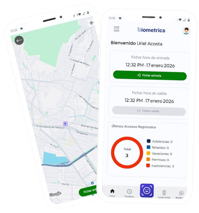 Registra asistencias en cualquier sucursal mediante huella o rostro, totalmente compatible con nuestras terminales. También puedes hacerlo desde la app móvil, ideal para empleados en campo, home office o ubicaciones remotas.